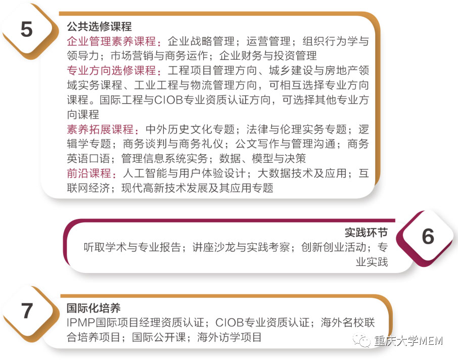 重庆大学工程管理硕士(MEM)项目依托于重庆大学管理科学与房地产学院,具有以下7个方面的特色与优势: